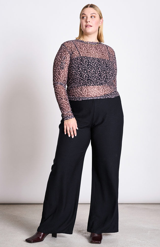 Chique, transparante top van JAN 'N JUNE met een leuke leopard print. Deze slim-fit mesh top is helemaal doorzichtig, heeft lange mouwen en valt op de taille, boven de heup. Het shirtje is gemaakt van gerecycled polyester en elastan en leuk te dragen op een pantalon of jeans.