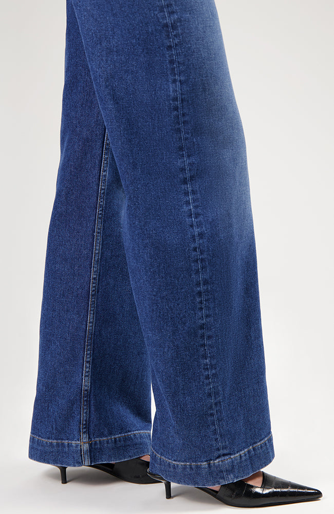 De June mid loose jeans is een nieuwe fit van het Nederlandse merk MUD jeans. Ze heeft een wijd vallende fit (mid waist) en daarmee wijde pijpen vanaf de heup. Helemaal wide leg dus. De broek heeft speelse steekzakken, blinde kontzakken en een mooie blauwe denim wassing.