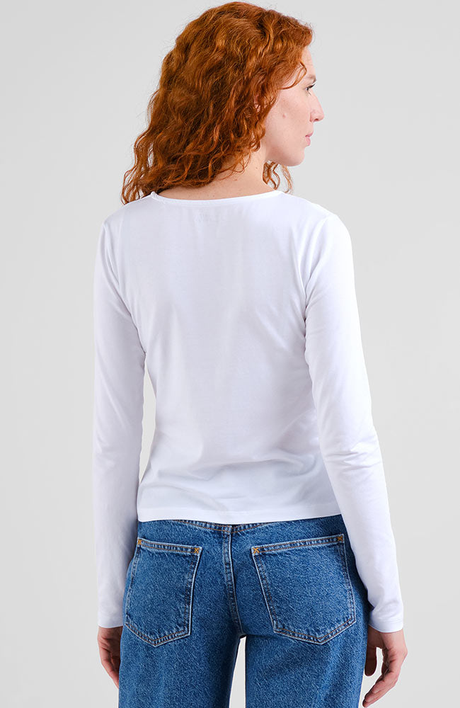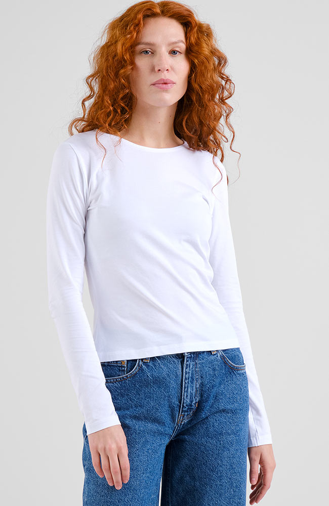 Deze mooie basic long sleeve top van Dedicated is perfect om laagjes te maken. Ze is  gemaakt van een zachte mix van biologisch katoen en TENCEL Lyocell jersey. De top heeft een aangesloten fit en ronde hals.