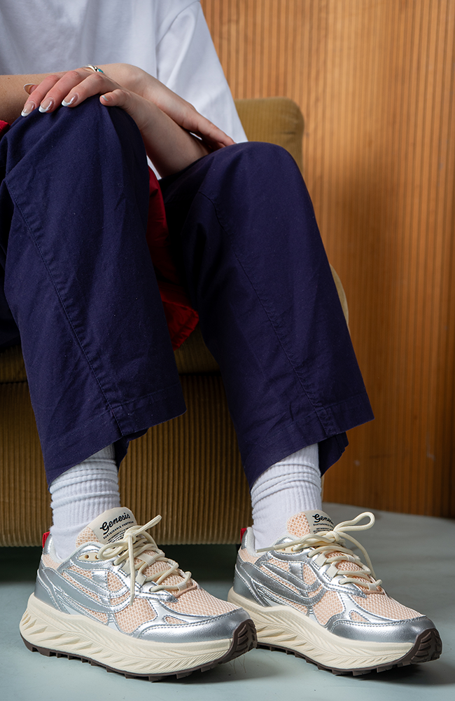 Deze prachtige vegan sneakers zijn van het sneakermerk Genesis Footwear! De sneakers hebben een 'running' model en zijn gemaakt van een combinatie van maïsafval (voor het vegan leer), suikerriet (vegan suede), gerecyclede PET-flessen (veters), gerecycled PU-schuim + FSC kurk (binnenzool), duurzamer verbouwd rubber (zool) en REWAVE™ bamboe (voering). Oftewel allemaal vegan en duurzamere materialen. Deze variant van het G-Eco bulky model heeft beige en zilveren accenten. Ze lopen heerlijk comfortabel door de extra dikke zool en het luchtige mess aan de buitenkant.