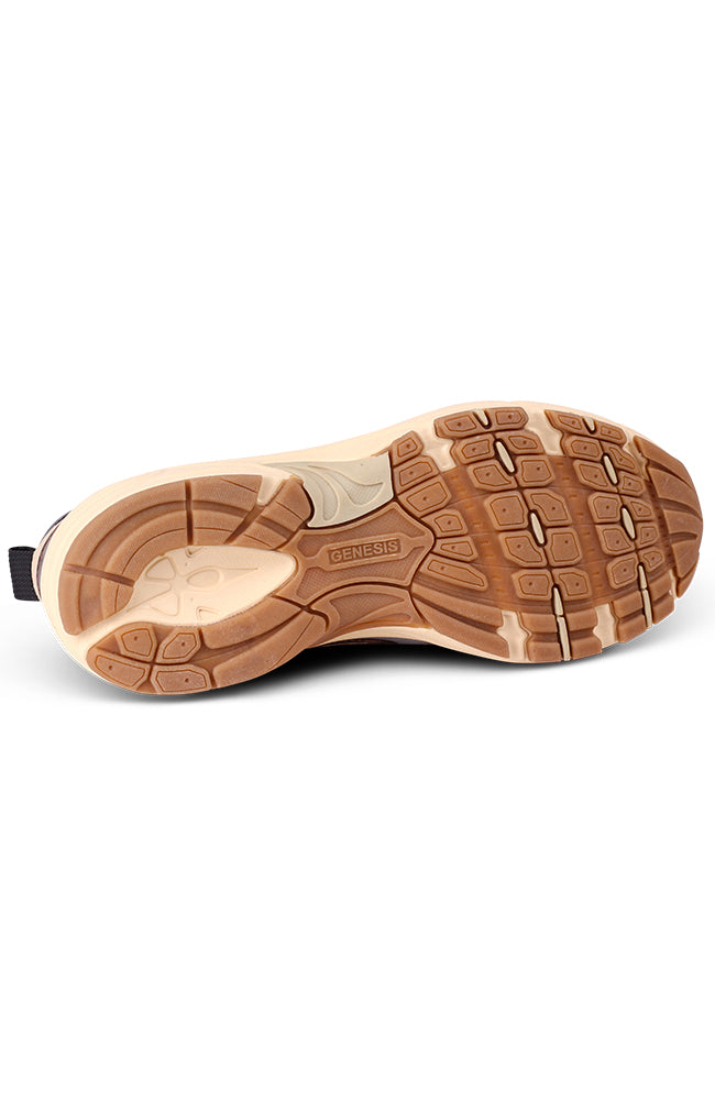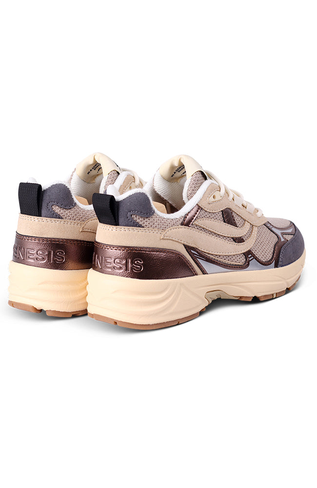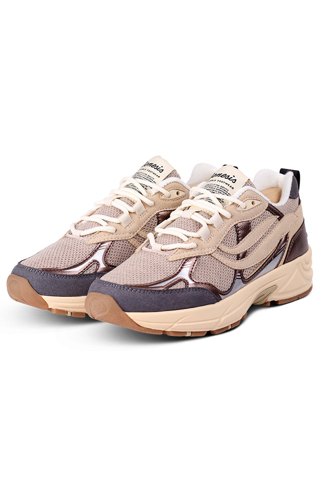 Deze prachtige vegan sneakers zijn van ons nieuwe duurzamere sneakermerk Genesis Footwear! De sneakers hebben een 'running' model en zijn gemaakt van een combinatie van maïsafval (voor het vegan leer), suikerriet (vegan suede), gerecyclede PET-flessen (veters), gerecycled PU-schuim + FSC kurk (binnenzool), duurzamer verbouwd rubber (zool) en bamboe (voering). Oftewel allemaal vegan en duurzamere materialen. Deze variant van het G-Eco metallic serial model heeft grijze, beige, metallic chopper & zilverkleurige accenten. Ze lopen heerlijk comfortabel door de dikke zool en het luchtige mess aan de buitenkant.