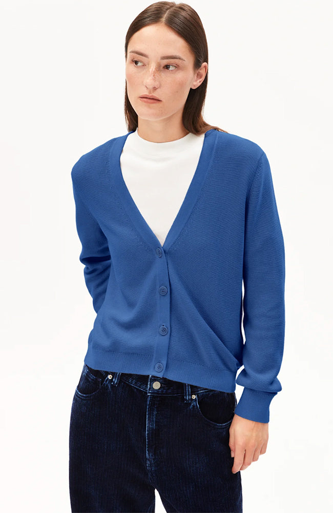 Dit leuke blauwe vest van ARMEDANGELS kun je eindeloos combineren en is een echte must-have in je garderobe. Het fijn gebreide vest is gemaakt van 100% biologisch katoen.