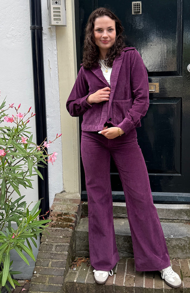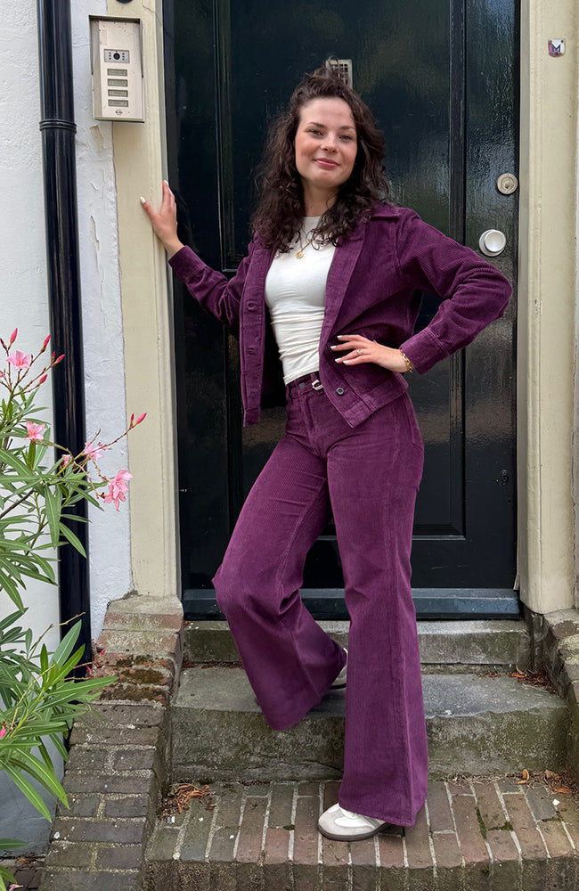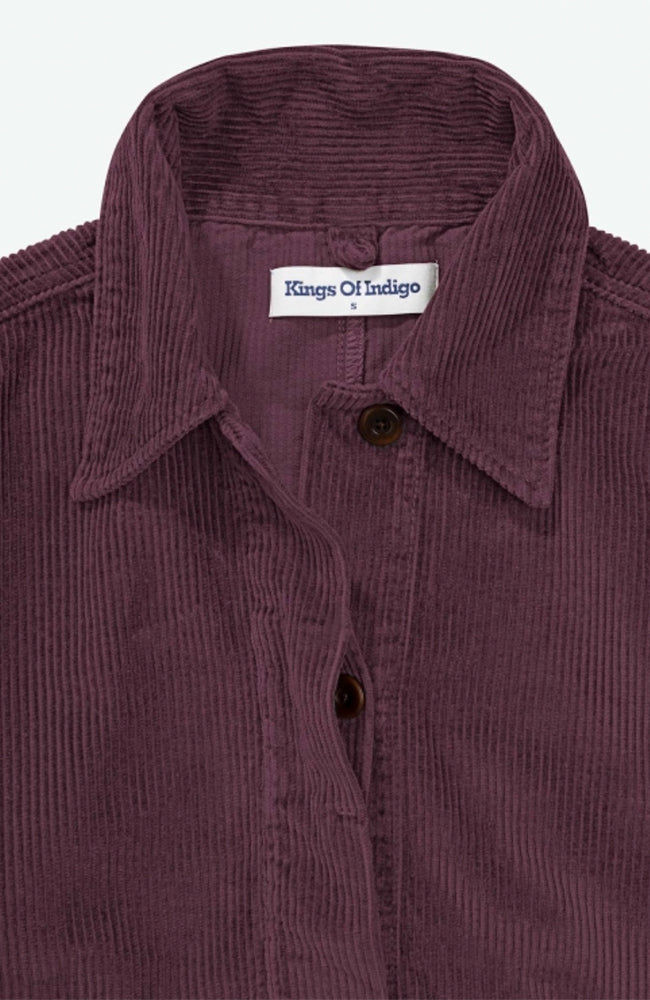 Tof corduroy jasje/blouse van het Nederlandse merk Kings of Indigo in de mooie nieuwe kleur 'mauve wine'. Het model is enigszins cropped, heeft blinde knoopjes, 2 grote zakken en is gemaakt van 100% GOTS gecertificeerd biologisch katoen. Ook leuk om als set te dragen, met de bijpassende broek JANE.