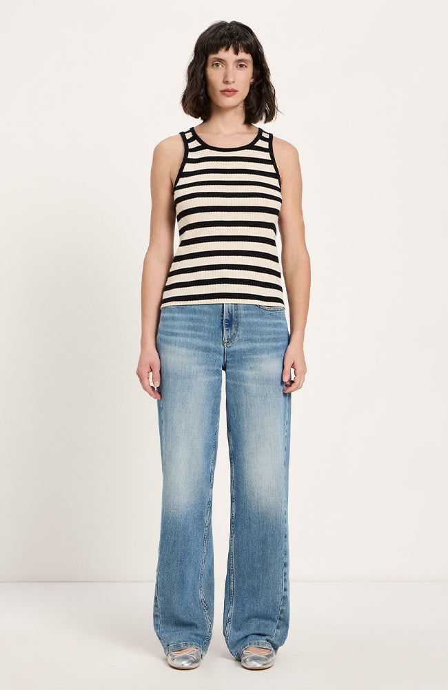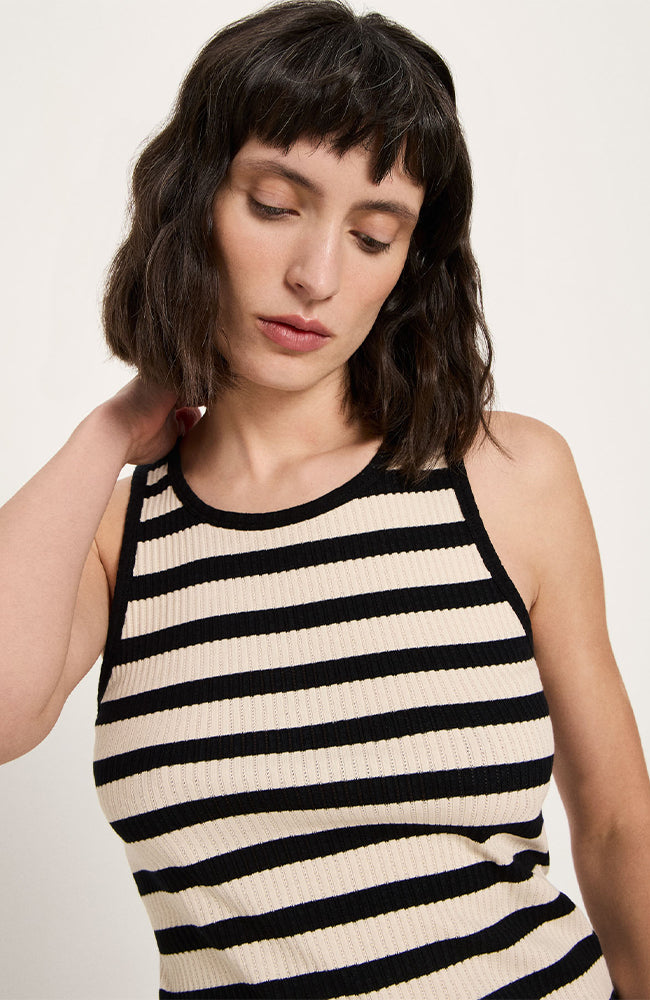 Tanktop strepen zwart crème