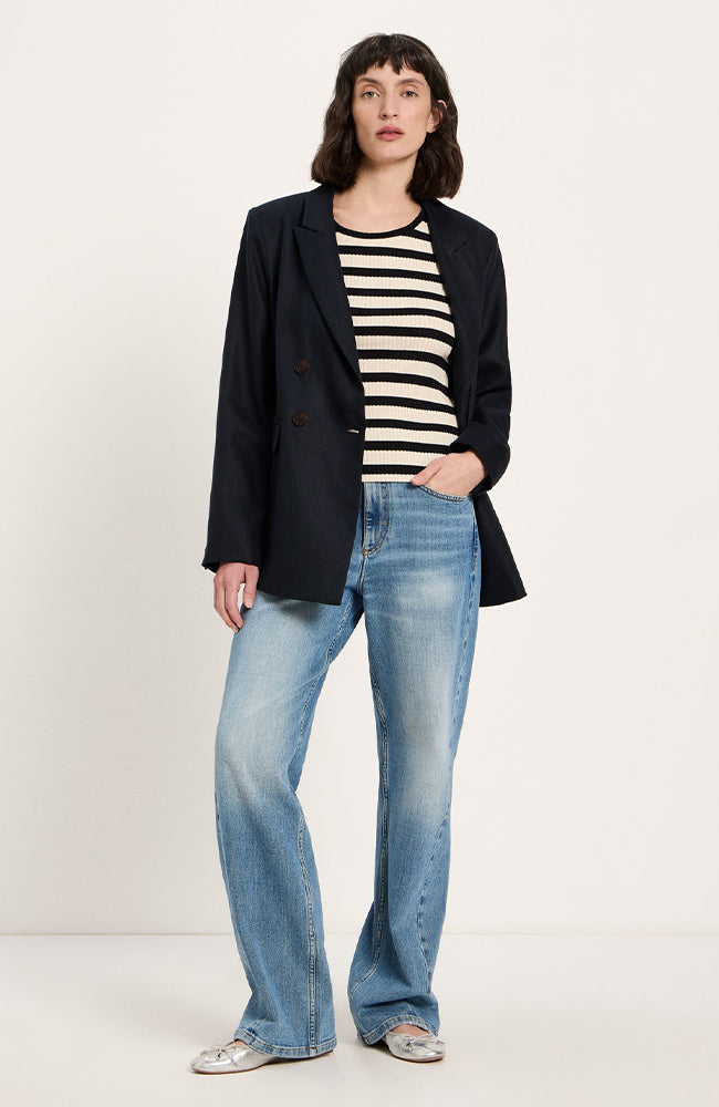 Leuke tanktop met een strepen patroon in het zwart en crème van het merk Lanius. De top heeft een rechte, aansluitende pasvorm, is mouwloos en een heeft een hoge ronde hals. Gemaakt van 100% biologisch katoen. Houd je van sets? Dan zijn de bijpassende shorts leuk om erbij te dragen!
