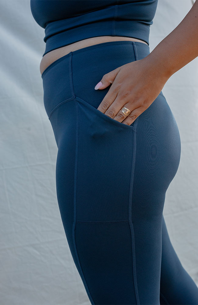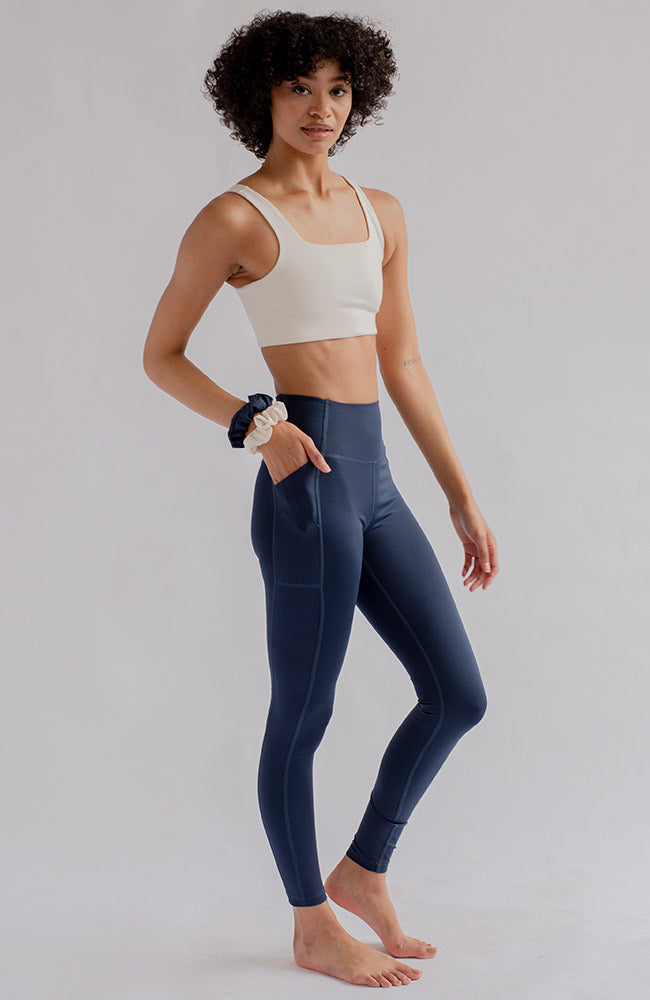 Geweldige yogalegging van ons nieuwe merk Girlfriend Collective mét een handige zak aan de zijkant voor je telefoon/sleutels of wat dan ook. De legging is 100% niet doorschijnend, rekbaar in 4 richtingen en sluit perfect aan en kleedt mooi af door de 'compressie'. Gemaakt van 25 gerecyclede plastic flessen, voelt zacht maar stevig aan. Gemaakt voor high impact workouts en 'squad proof'.