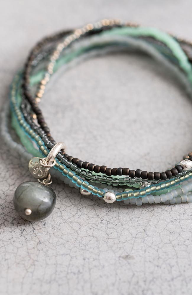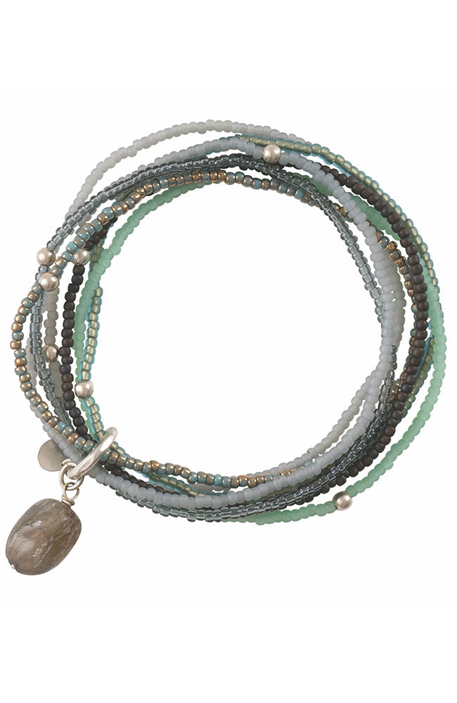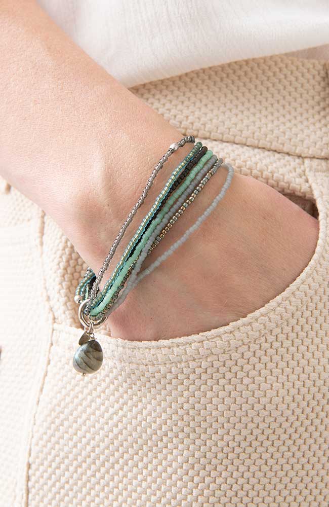 Mooi armbandje (17 cm) van A Beautiful Story. Het betreft een 7-laags kralen-armbandje met een labradoriet edelsteen aan het zilveren hangertje. Labradoriet heeft een sterke intuïtie. Weet je even niet wat je moet doen? Labradoriet wijst de weg. Labradoriet verzamelt al je krachten en trekt succes aan.