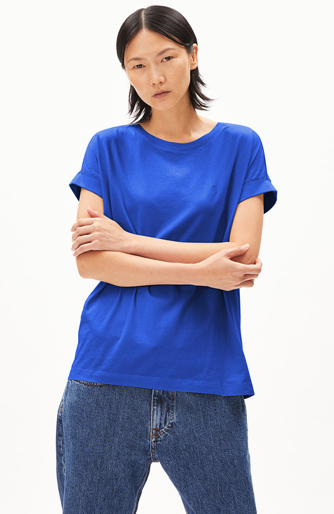 Fijn basic shirt van ARMEDANGELS in een helder blauwe kleur, namelijk 'dynamo blue'. Het shirt heeft een oversized model, stoere cut, ronde hals en een omgezoomd mouwtje. Ze is gemaakt van zacht en duurzamer biologisch katoen en is onze absolute all-season favoriet!