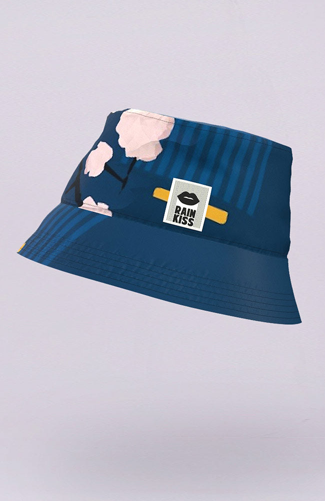 Inspired by Japan, designed in Amsterdam. Deze bucket hat met Japanse bloesem geeft een moderne twist aan traditioneel Japans design. De delicate roze kersenbloesem is uitgespreid op een ondergrond van verschillende tinten blauw, turquoise en geel. Een mooi en vrolijke design voor elke regenachtige dag.