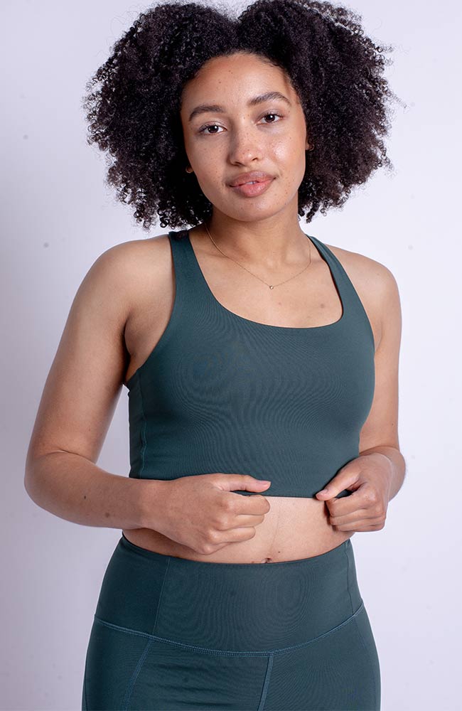 Dé bestseller yoga BH top van Girlfriend Collective heeft een ronde hals, raceback, een wat langere lengte dan een normale BH top, is 100% niet doorschijnend (want dubbel gevoerd) en heeft een ondersteunende band. Gemaakt van 11 gerecyclede waterflessen.