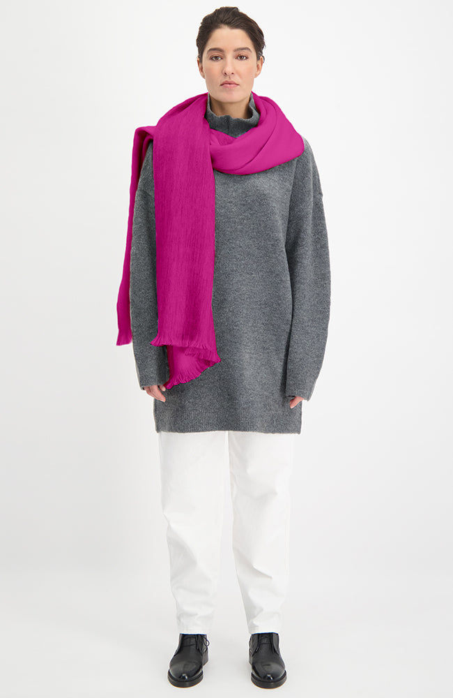 Lekker zachte alpaca wollen geweven sjaal (200x65 cm) van ons nieuwe merk Alpaca Loca. Deze duurzame sjaal is gemaakt van een wol-acryl mix en extreem zacht. De sjaal heeft een mooie roze-paarse kleur en kan oneindig gecombineerd worden.